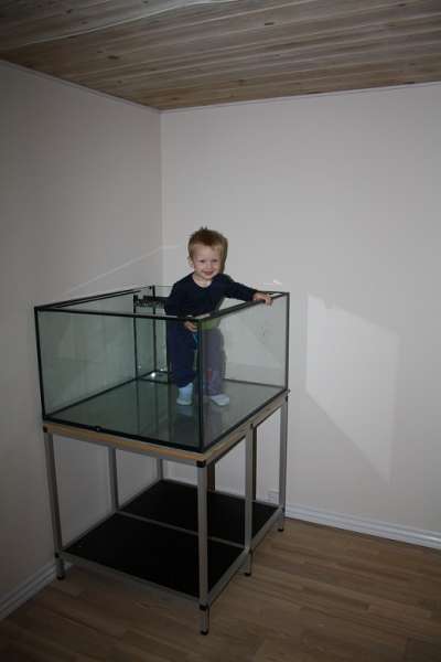 Så er sommeren ved at være ovre og der er blevet lidt tid til akvariet her til aften er der blevet limet søjler og jeg er ved at være klar til at bestille porsa til bord og lampe. Jeg vil lave et glide system så jeg kan justere lampernes placering som jeg vil og så det er let at. Komme til akvariet