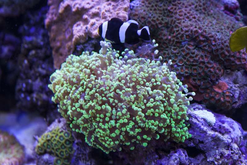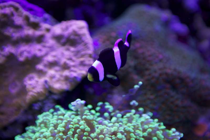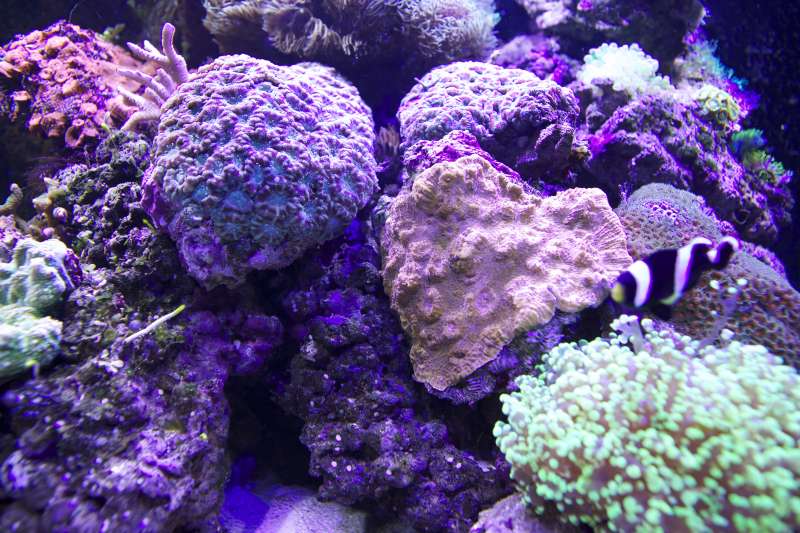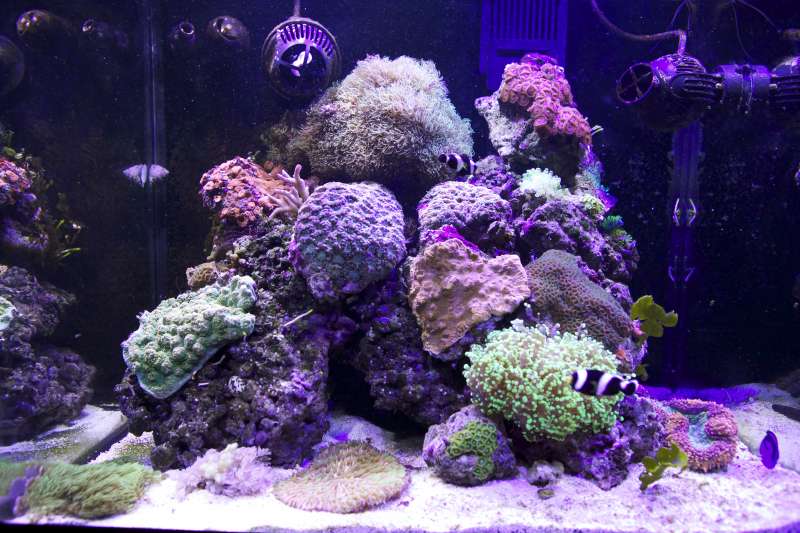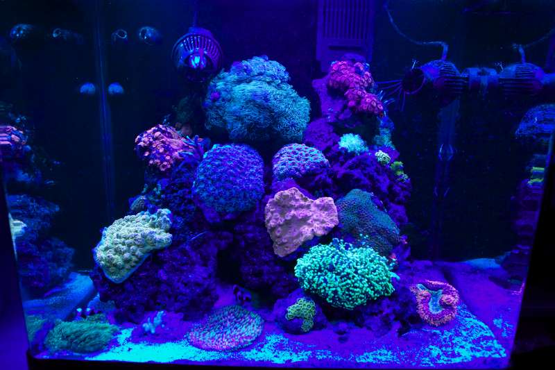 I selve akvariet er der omkring 20 kg levende sten og nogle kilo sand.