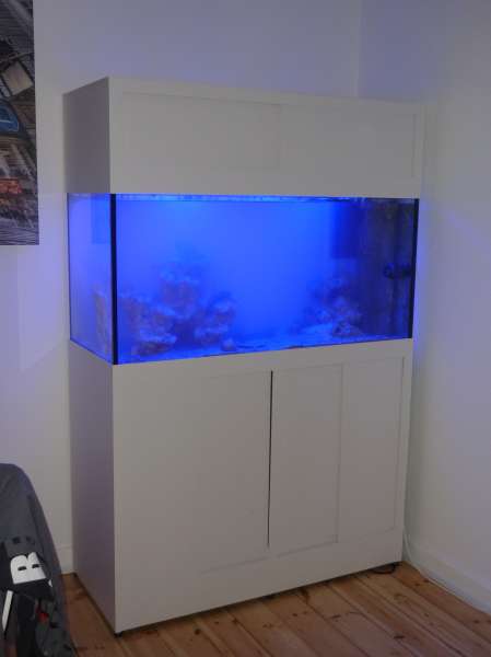 Vi valgte at gå all-in på at få et lækkert akvarie med fede lamper, så i de første par måneder under indkøringen, kører vi low-budget med de ting vi havde tilbage fra det gamle RSM 130.