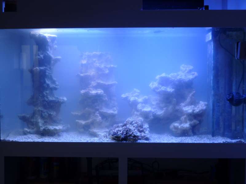 Det var egentlig ikke svær beslutning da det kom til stykket. Den midterste røg tilbage i butikken til Carsten. Den var bygget til et overløb og da den blev placeret næsten op ad bagrude, ville der for det første være spildt 10 liter svømmeplads, men samtidig ville der stå 10 liter vand helt stille bagved og det duer jo slet ikke :naughty: Jeg fik slæbt en anden sten med hjem i stedet, men den er desværre også lidt for stor. Jeg tror vi holder os til de to søjler i siden og så en lille ø i midten som bliver den sten der ligger forrest på billederne, og kører den simple stil med masser af vokse plads til korallerne og god svømmeplads :f3: :f2: :f3:
