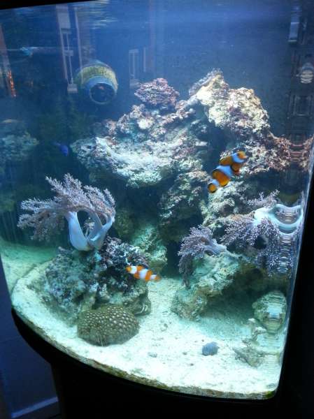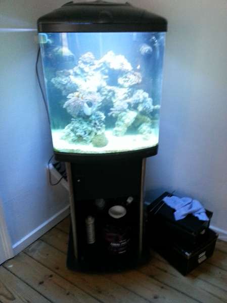 Hey folkens, som så mange andre vil jeg da lige dele mit nye erhvervede vandpyt:) har haft det til og køre en 3 uger siden jeg overtog det, ( hentede det med vand og det hele) syntes selv det ser rimelig fornuftigt ud taget i mente det har haft et flyt. der er kun et par sandsnegle og en søstjerne i plus to klovnfisk og en lille blå fisk der fulgte med( navn ukendt) så er der lidt blød koraler selvfølgelig.
