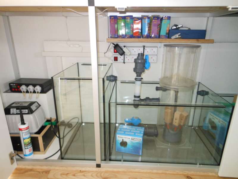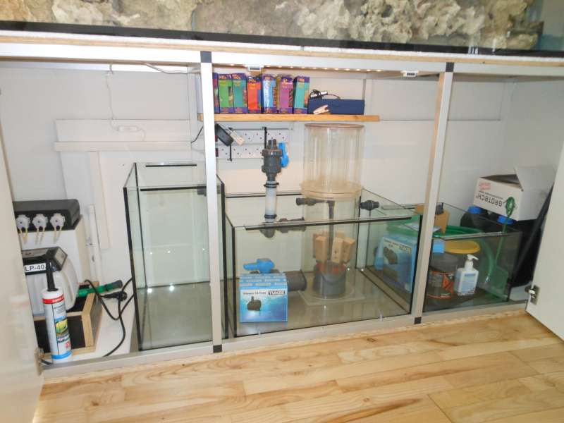 Carsten har målt op til sump, ferskvandskammer og halvautomatisk vandskifttank, som jeg håber kommer før jul.