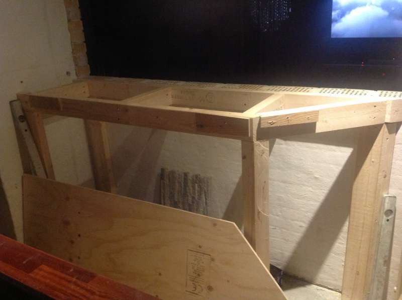 Det bliver bygget ind i væggen mellem stue og køkken lige et lille foto af start på hul hvor der bliver lagt et ståltejl i så de sidste sten bliver oppe ;)