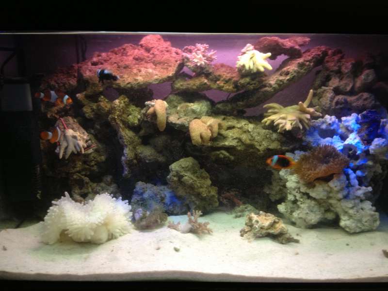 Alt i alt går det faktisk godt med akvariet :) har kørt i over 4 mdr og cirkulationen er rimelig god...den ene søanemone har ikke rørt sig ud af flækken i en måned...dog er den anden ret vandrelysten (erhvervet) for 14 dage siden og tror ikke den har kunnet indfinde sig i et akvarie...koralerne har det faktisk godt, dog er de blevet fragmenteret for en uge siden og dette tror jeg gør at de ser lidt slatne ud...dog skal det lige siges at de ser fine ud langt det meste af tiden...er 130l. Og sker "i råd" fra Flemming fra aquastyle i Esbjerg :)