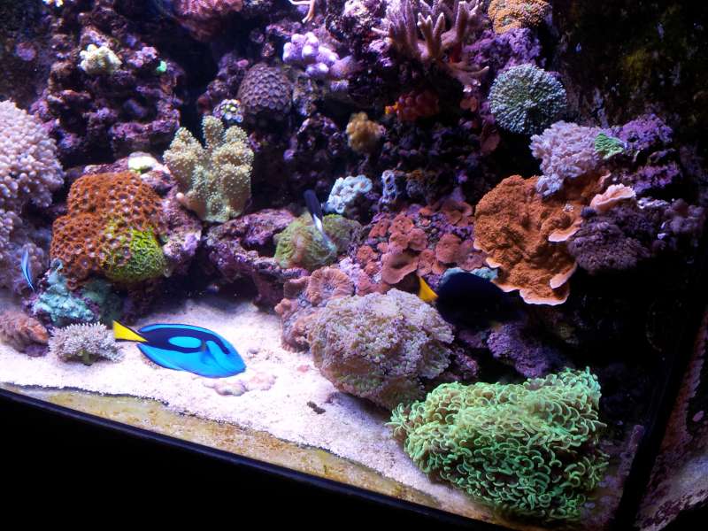 Akvariet er 70x45x45 og skal fyldes med div. montiporaer(digita, superman, plade og andre) og hystrix mm.