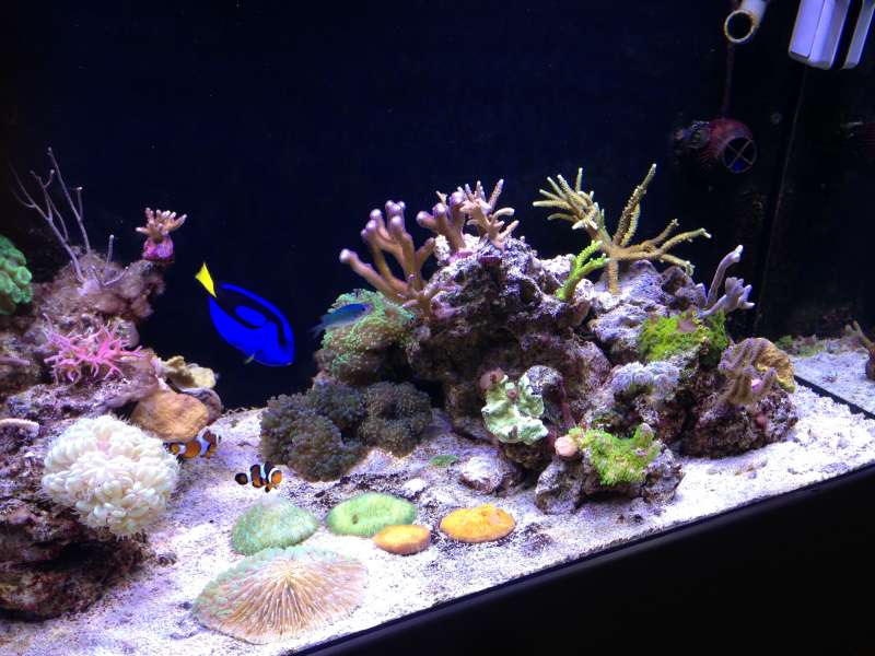 Se på stenen omk hysterix, sandbunden rundt om fungia og pumpen i højre hjørne (er en slim agtigt alge)