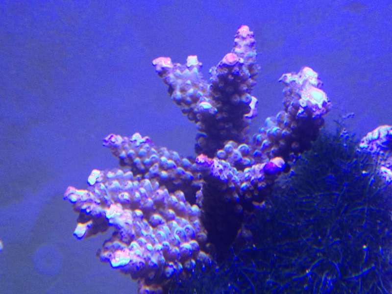 Jeg har en lille acropora som ikke har det så godt. Toppene på grenene er hvide og afgiver slim men resten af korallen ser fint ud