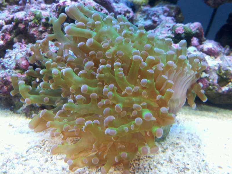 Filfisken har klaret det rigtig godt, jeg har ikke set skyggen af en glasrose i flere uger. Jeg havde en ret stor tot xenia som den har klippet totalt ned og den har ædt de få zoa polypper jeg havde. Kan se den også smånapper til de alm. Polypper og i øvrigt prøver til ved alle de andre koraller.
