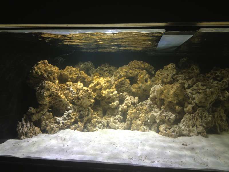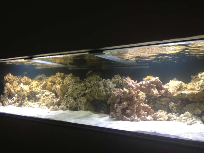 Fra display løber ALT vandet gennem skummer, gennem sump ca 50% løber gennem refugium hvor returpumpen sidder og pumper det retur igen de sidste 50% løber gennem en koralreol 3stk 210liter og retur til display.