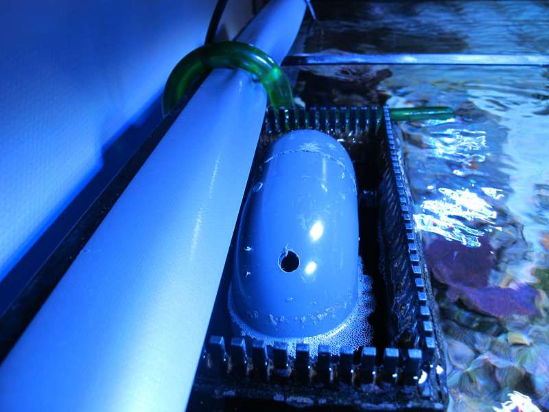 Nu har jeg lavet begge rør i overløbet til nedløb til sumpen og lavet et returløb uden på akvariet.