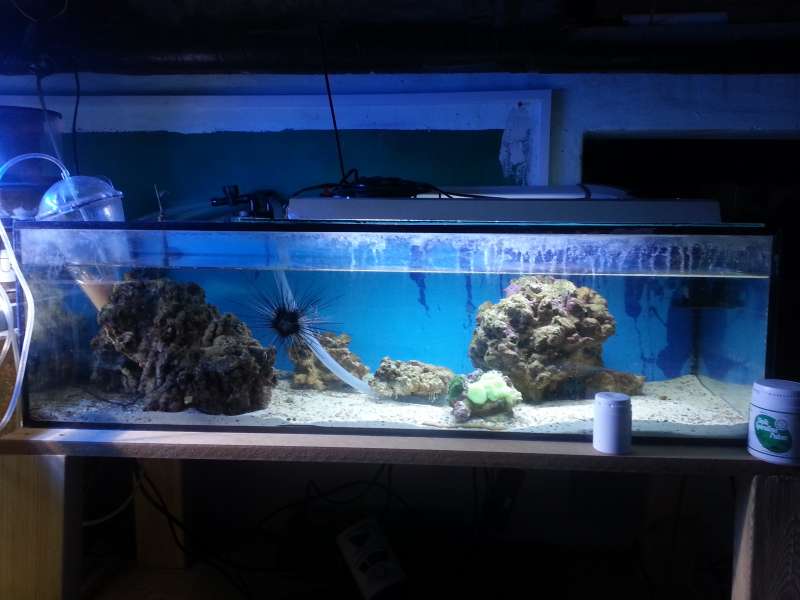 Ved ikke hvad den lever af men den har været dernede i længe nu. Tror det er alger. Jeg har en del af dem i mit opdræt da det er hanevand jeg bruger der. Jeg har kun et par blødkoraller i så værdierne på PO4 betyder ikke så meget.
