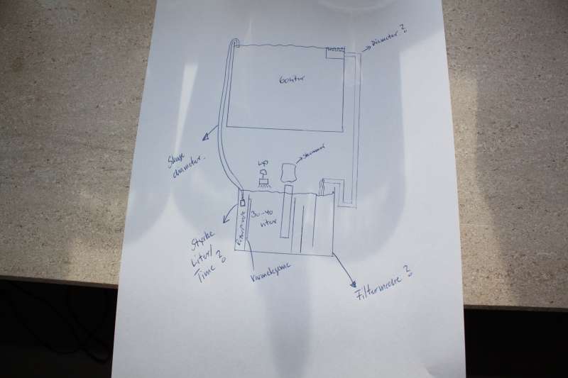 Udfordringen bliver at få vandet fra hovedakvariet ned i sumpen og retur på en elegant måde.
