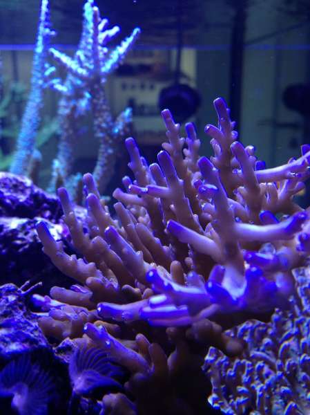 Blev for alvor "hooked" igen, da jeg på nettet så nogle fantastiske levende koralrevsakvarier, og samtidig i Storcenter Nord i Århus kunne se et i virkeligheden (det første de havde opstillet) med store Acropora staghorn og andet guf. Blev dog noget bleg, da jeg fik lov til at kikke i "maskinrummet", og kunne se, at man nok nærmest skulle have en Ingeniøruddannelse for at fatte alt det isenkram, der var proppet sammen dernede.