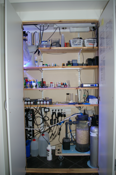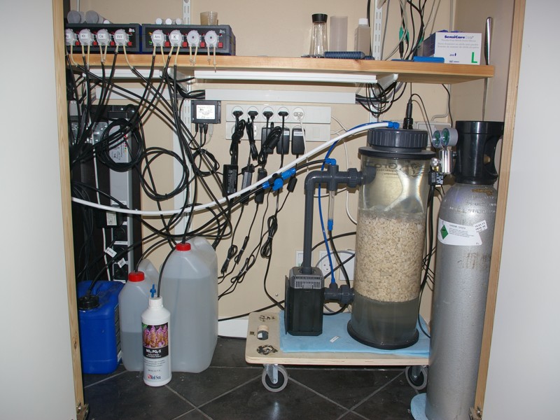 På den tekniske side har jeg bestemt ikke holdt mig tilbage. Helt tilbage fra ferskvandsakvariet har jeg givet den max gas på teknikken. Ud over min interesse for selve hobbyen, pirrer mine interesser inden for teknik og elektronik. Jeg startede med at benytte computerstyring allerede, da jeg havde mit planteakvarie, hvor jeg købte min første GHL Profilux, som dengang kontrollerede Temperatur, Co2 reaktor samt dæmpbare T5 armaturer.