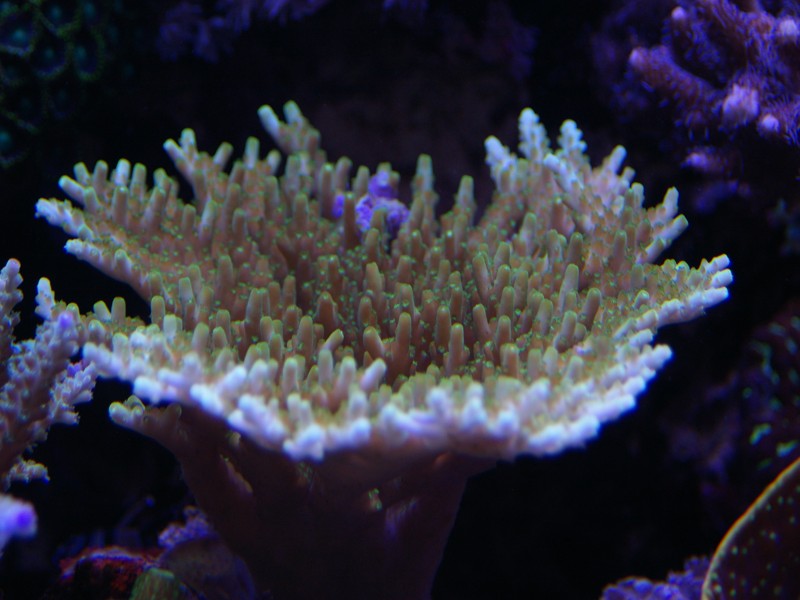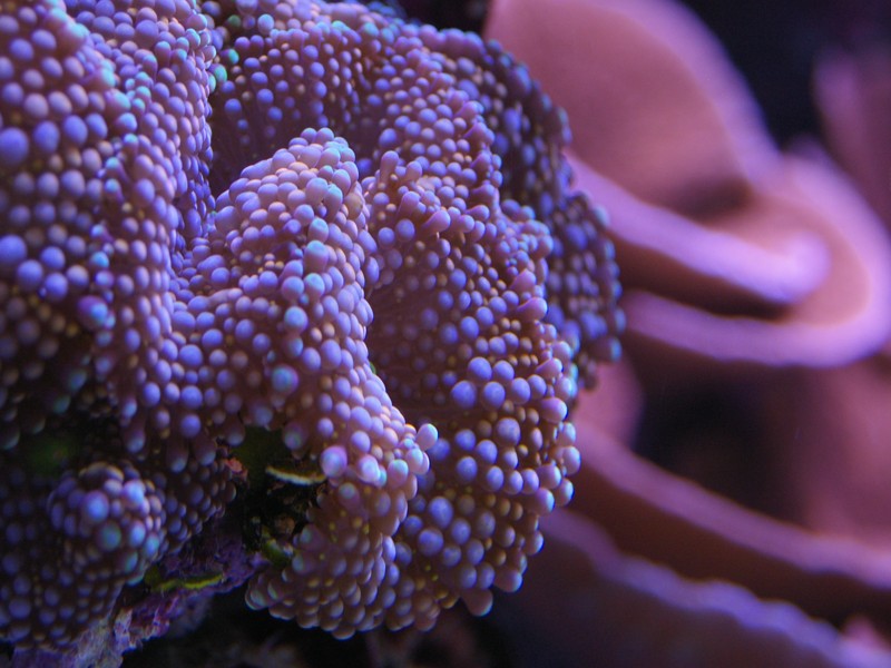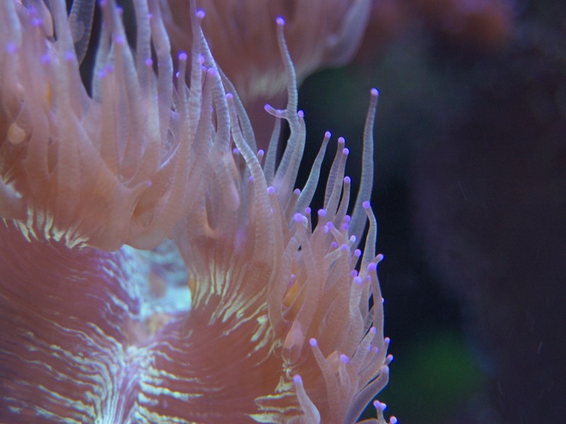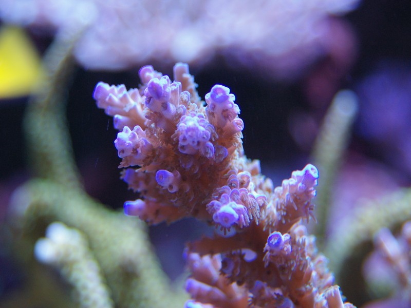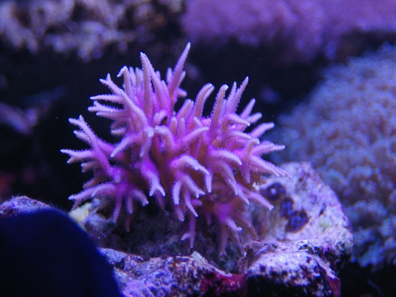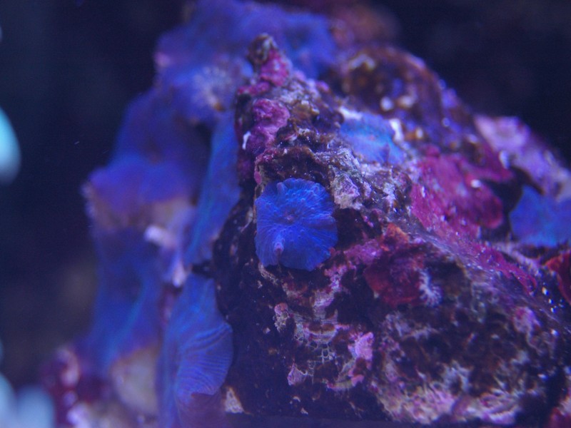 Som dekoration er naturligvis også et mindre antal levende sten, som jeg har beholdt. Mest fordi der lever koraller på. Da jeg startede akvariet op, lagde jeg 50 % af mine levende sten, fra det tidligere akvarie, ned blandt keramik søjlerne for at seede akvariet med min eksisterende biologi, men disse er efterhånden taget op alle sammen.