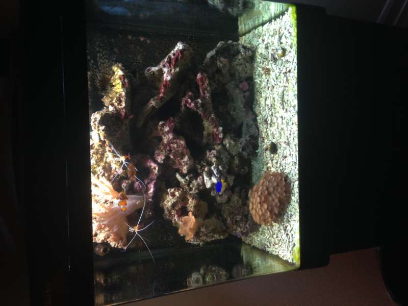 1. Ud fra hvad jeg har kunne læse, så er dette en glasrose? Kan i venligst be/ -afkræfte om det er det? Hvad gør de? Og hvordan fjerner man dem lettest? 2. Er begyndt at få nogle grønne alger, som sidder rigtig godt fast på glasset. Hvorfor kommer de? Og hvordan får man dem lettest væk? Her tænker jeg både med at fjerne dem fra glasset, men også generelt så de ikke dukker op. 3. Min ene koral er pludselig begyndt at få nogle sorte/ grønlige pletter - Hvad er det, og har det nogen betydning? Lige et billed af akvariet som det står til slut
