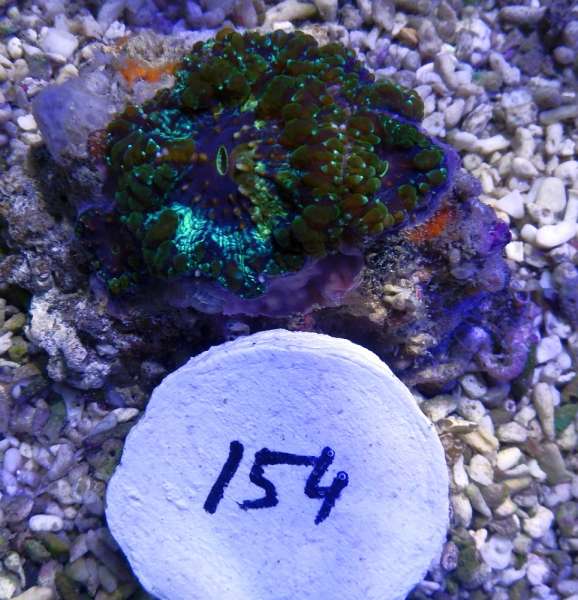 Min vurdering er at det ikke er en Blastomussa, men hvad det så er ved jeg ikke. En Blstomussa har mere et skelet som en Euphyllia paraancora. Nr. 154 ser ud til at være langt mere fast forbundet med underlaget. Farven er også helt ved siden af hvad de ellers er set i.