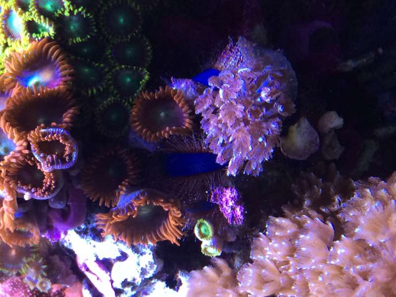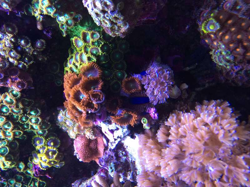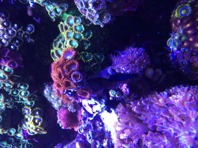 Den dekorere sig selv med alt muligt.. Lige nu har vores et par Zoas ( de billige heldigvis), lidt Xenia plus en tandstik ( gammel left over fra at placere en blødkoral i akvariet for lang tid siden)