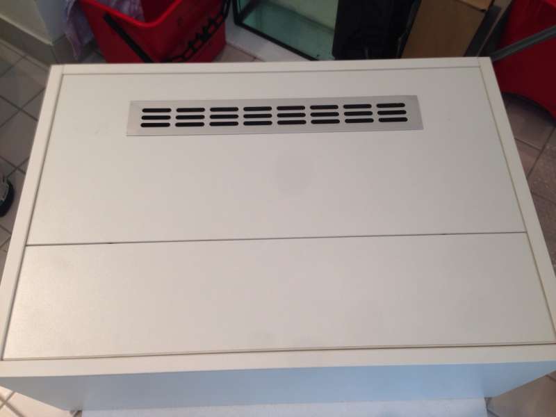 Der er en del billeder i min gamle tråd om akvariet, kassen har to huller i bagvæggen på 8x10 cm til ledninger osv, og en rist i toppen som er 40x5 cm