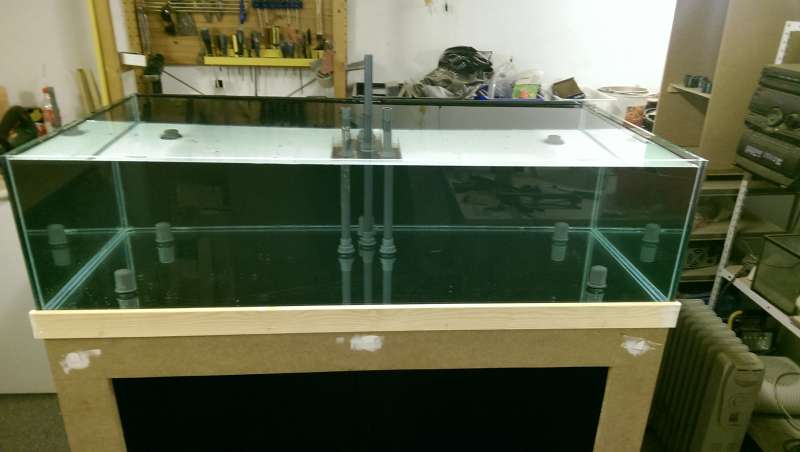 Jeg ville have lavet overløbet i midten af akvariet men kom til at sætte en bærende stolpe i bordet lige der hvor hullet skulle være.. DOH