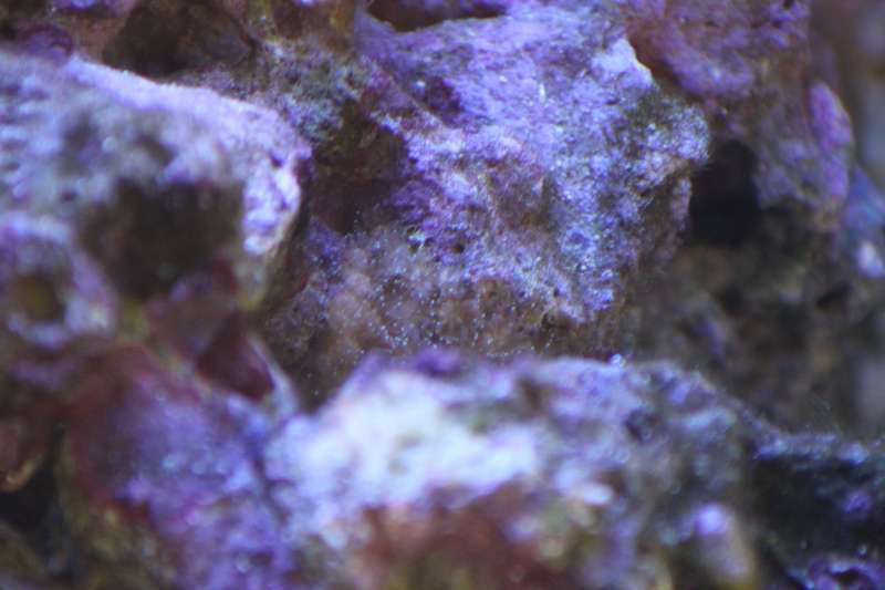 Jeg har købt mine levende sten "brugt" men levende og de har ligget hos mig i en regnvands tønde i cirka 3 uger med cirkulation, varme og salt. Ham har købte dem af havde haft lidt bobbelalger og det vil jeg så også skyde på at jeg har (billede).