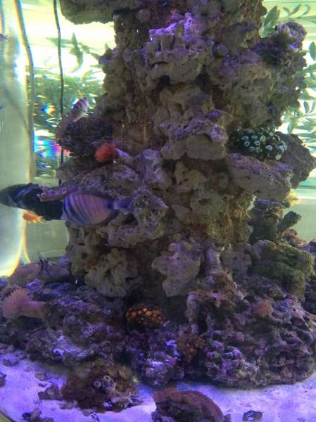 Da min skummer ikke opførte sig korrekt, det hjalp, nu tager den 1-2 cm om dagen. Lidt tynd men ok for nu. Har også måtte smide lidt småsten i til at holde på sandet. Alle fisk og koraller har klaret overflytningen godt.