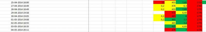 Jeg har vedhæftet et billedet med målinger frad. 25/4 og frem.