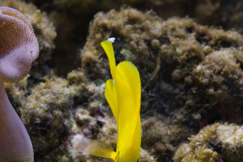 Jeg har en gul kirurg som nu har gået i akvariet i en måneds tid nu. Kort efter den kom i akvariet begyndte der at være en hvid vækst på halen af den, som i starten var meget lille. Efterhånden er den dog vokset en del, så jeg er begyndt at blive bekymret. Væksten sidder helt længst ude på halefinnen, så umiddelbart er det jo langt væk fra kroppen og vitale organer. Fisken svømmer også livligt rundt og virker helt upåvirket af væksten. Den spiser fint bl.a. flagefoder mm. så den har ikke umiddelbart symptomer på at være syg (hvis jeg selv skal bedømme).