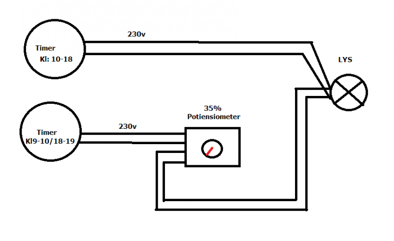 Hvis jeg nu sætter en timer til direkte til lys, og en der går gennem potensiometret, og de så overlapper hinandens tidszone, vil den der så bare går direkte så ikke bare være den lyset tager ?. Er selvfølgelig klar over at jeg ikke skal lave en fase/nul kortslutning.