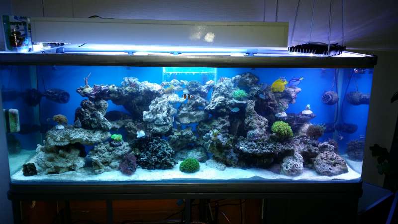 Nu har vi gået længe og prøvet at finde ud af hvilke lys vi skulle vælge og indtil vi får købt en lampe der dækker alle 1.5 m akvarie så har vi sat en diy led op i den ene side og kan her klart se forkellen på hvor klart vandet er under led i forhold til t5.