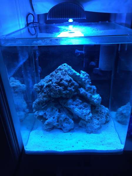 Hej jeg har for 3 uger siden startet et nano saltvands akvarie, modelen står i overskriften. I akvariet er der 7,5 LS, 4 in 1 bio-circulator fra dannerle, en tunze 9001 skummer, og dannerle lampe på 36w.