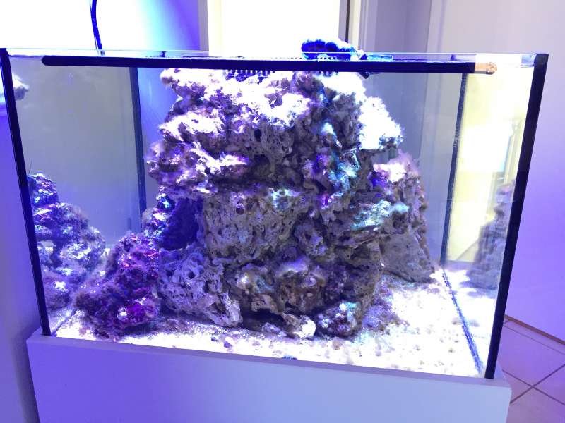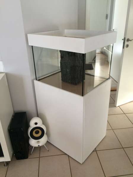 Efter en længere periode uden akvarie har jeg investeret en cube på 120 l med overløb i midten. Jeg kunne ikke lade være da det i min optik er det perfekte setup da alle "ruderne" er frie :wink: