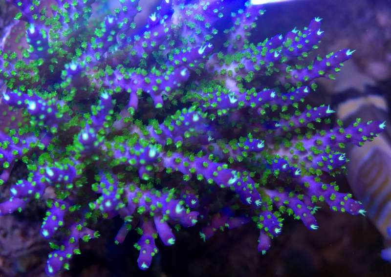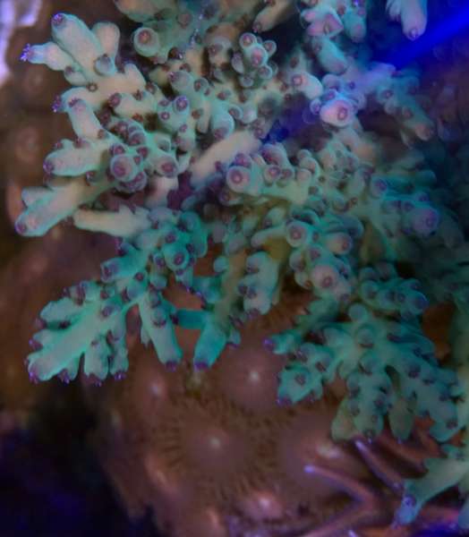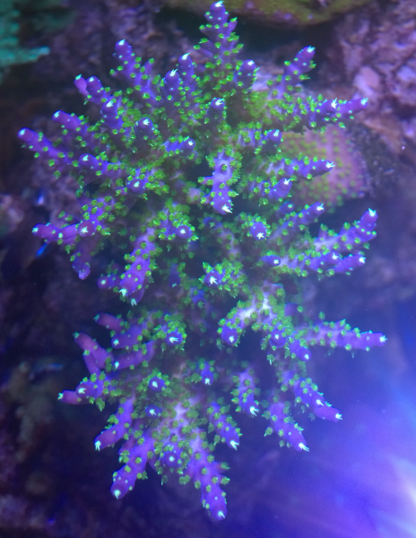 Blå grøn acro i dag Blå grøn acro for et halv års tid siden..... US monti plade Superman under blå lys lilla acro med grønne polypper