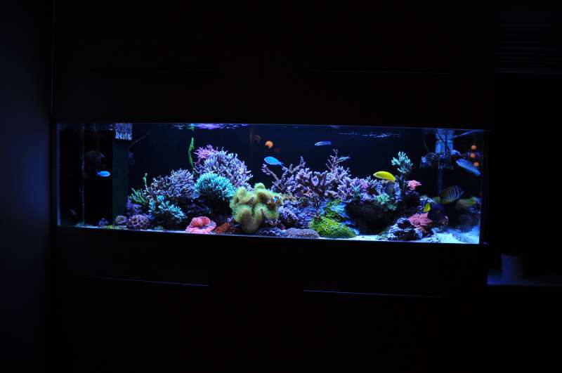 Vi købte så huset i 2012, og det fik en lille renovering indvendig samt udvendig, og så var det ellers akvarie, som stod på min "to do liste". Jeg startede med et brugt 288 liters cube, som jeg fik lavet ny sump til, kalkreaktor og LED lys. Cuben kørte i et års tid, men så stødte jeg ind i koraldød uden at kunne finde årsagen. Det var et nederlag af de store, hvor jeg mistede alle SPS. LPS stod, som de plejede. Så kunne ikke forstå det. Enden på det blev dog, at jeg solgte de resterende koraller, fisk og akvariet, og så bestilte jeg et nyt i den ønskede størrelse, som er det, som jeg har i dag.
