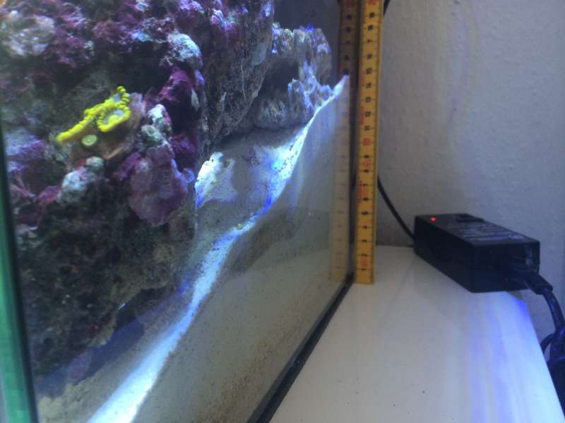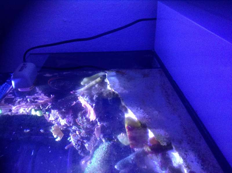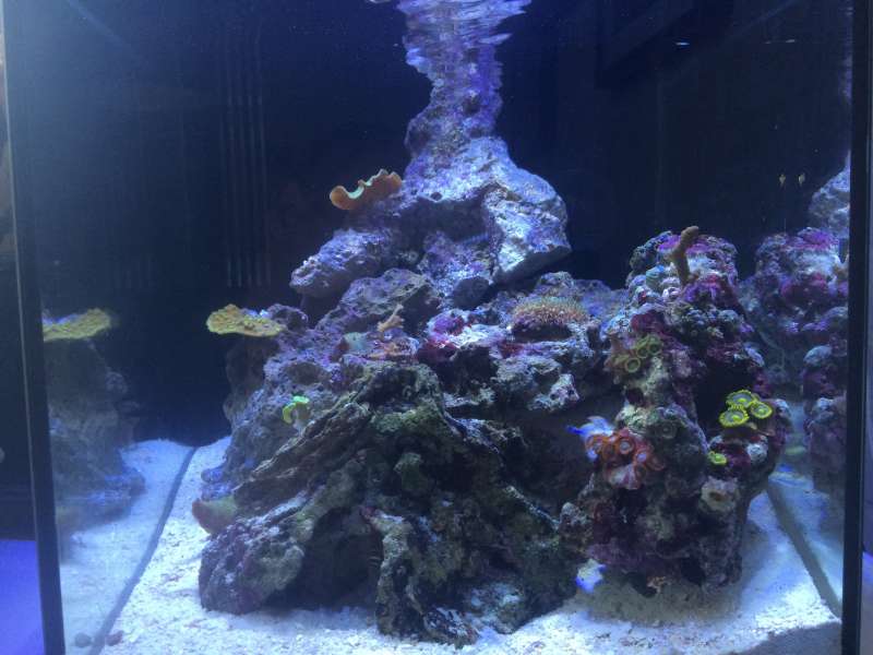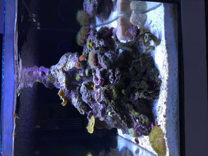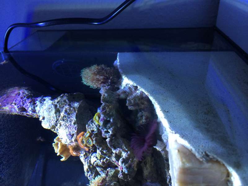 Ca 8,5 kg ægte sten er prasset ned i den lille tank og 1,6 kg lega hav farm sten er der også brugt (zoa have).