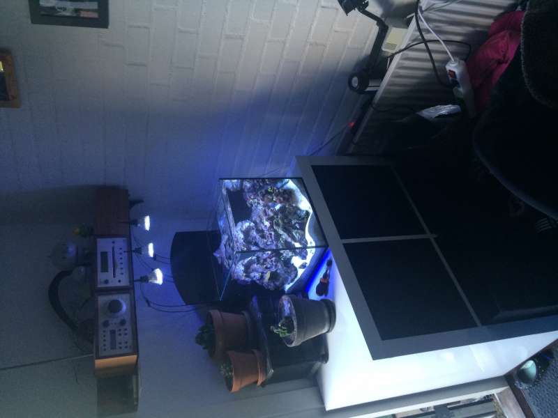 Ok alså det der er lavet er et aqua medic og et superFish begge på omkring de 40 liter og begge med meget bundlag dog ik DSB og de er rykket sammen i aqua medic og de fleste koraller er fjernet hvis der skulle komme en større indkørings fase.