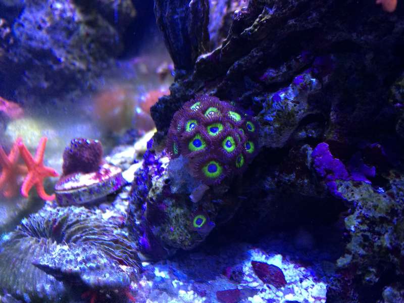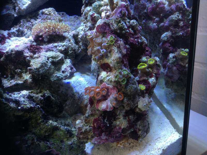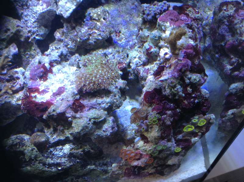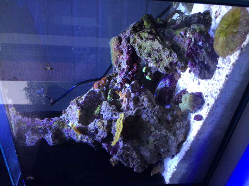 Sten står alt for tæt på til at rense ruden i venstre side så det må sneglen gøre men ja det er lidt øv når man ik kan rense ruder men det kan man ik rigtig på nogle af mine nu 7 rev, men lige i det her kan hele den sten som zoa'er sider på fjernes når der er lavet plads til den et andet sted så bliver hele den side åben igen jeg har lagt den til sidst og ingen ting eller sten rør den.
