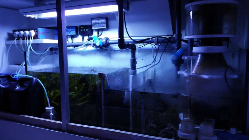 For det første har jeg fået koblet min fragtank/refugium på som er et akvarium på 160 x 60 x 35 (l.d.h.) med overløb I midten og skillerum det virker super godt.