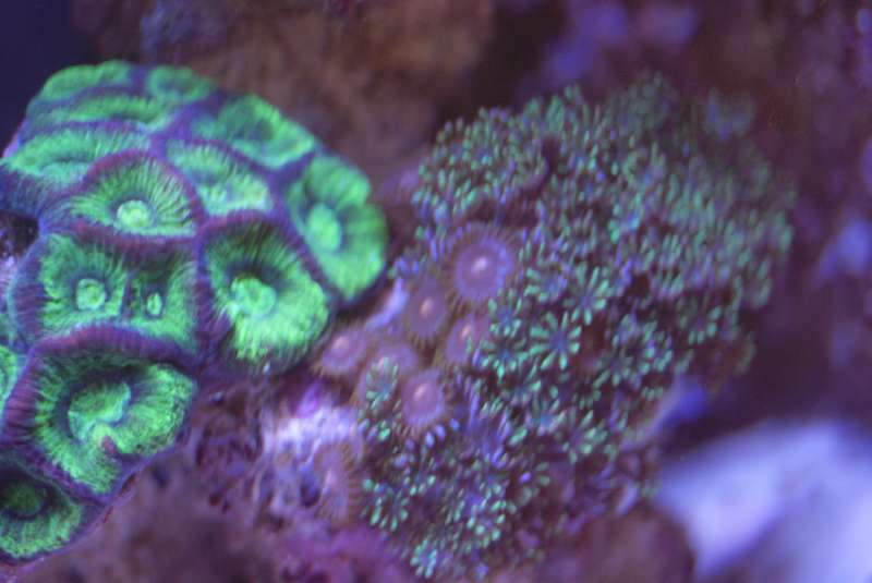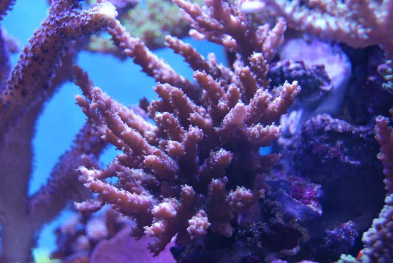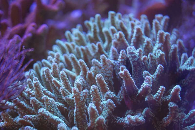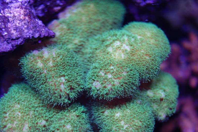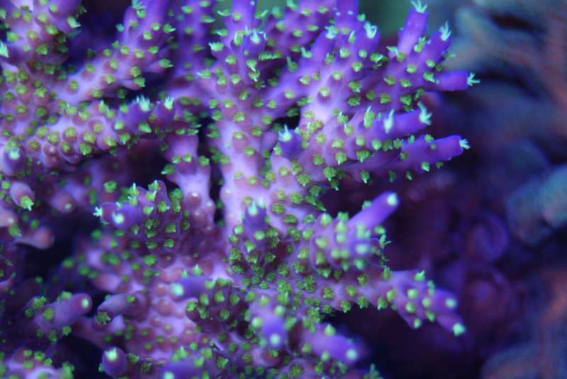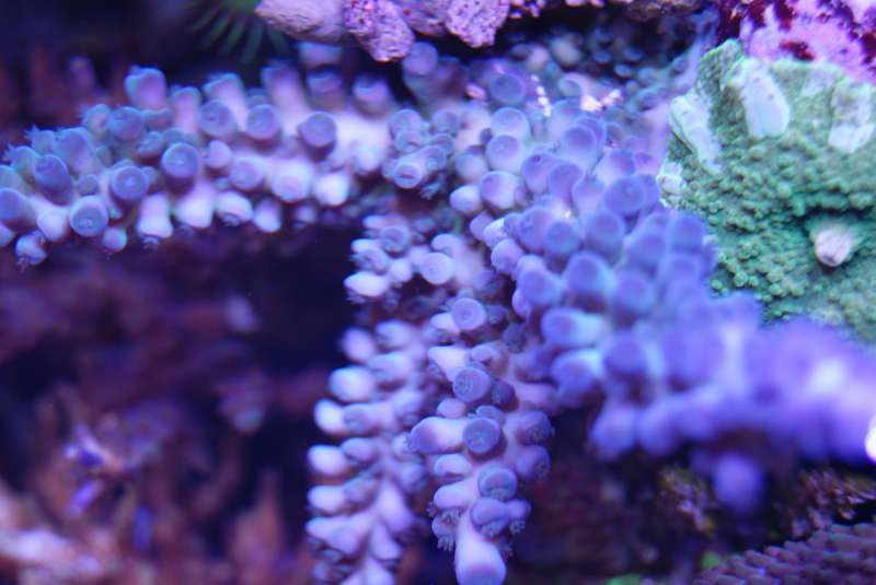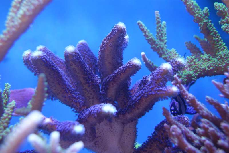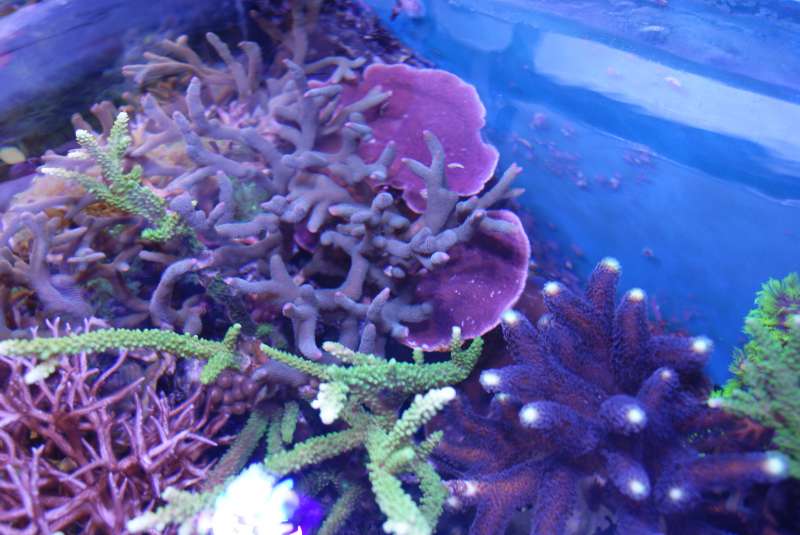 - Montipora sp. (grøn med lilla kant, rød og lilla)