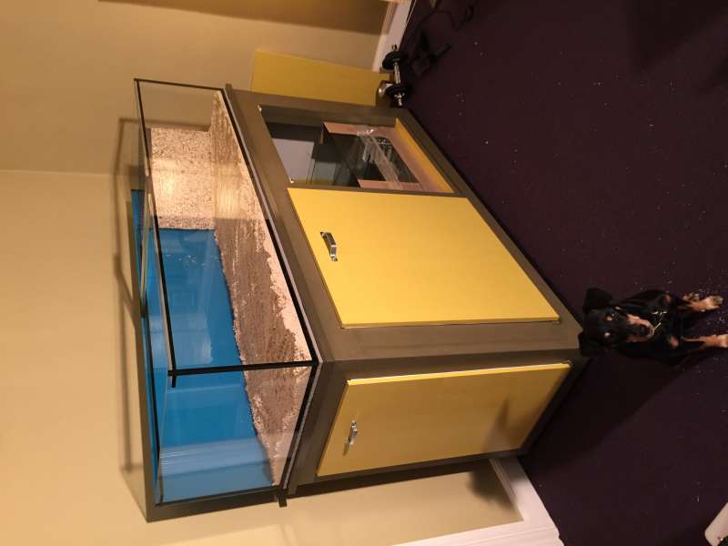 Annie Sloan Chalk Paint blev valgt for at give skabet et lidt anderledes look, så at sige Skabet er lavet med 6 låger, alle aftagelige og holdt fast med magneter Efter lang tids venten ankom selve akvariet.