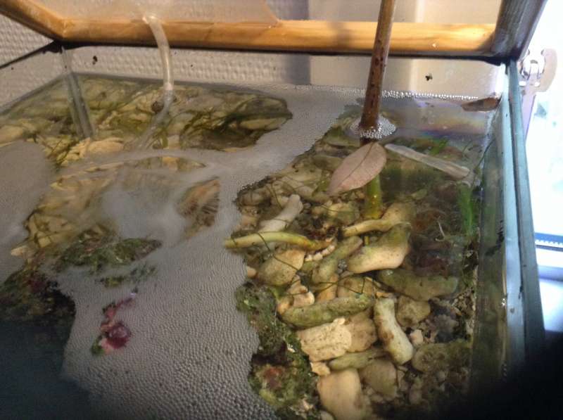 Der er 10cm-16cm sand og mineral mudder i og lidt snegle rejer pods og andet i.