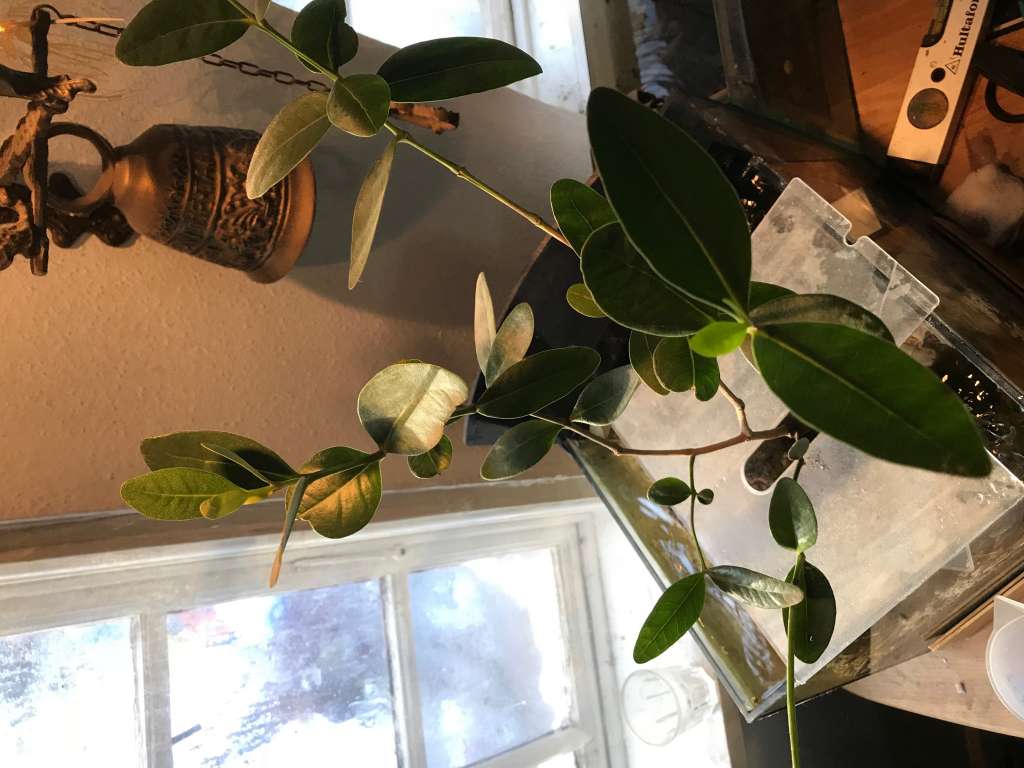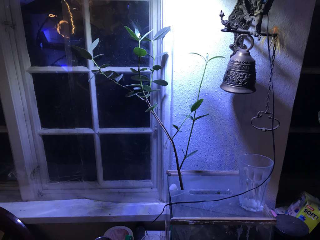 "Ny" lampe på 2gange 30watt halogen ser ud til at træet reagere fint og har vendt alle blade mod lyset i stedet for vinduet