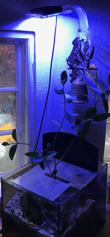 Jeg ville tro at en en kraftig (eller en håndfuld små) sparepærer vil kunne gøre det bedre? Planter optager den røde andel af lyset godt, som er underprioriteret i saltlys. Og meget af det super kortbølgede "uv" er heller ikke noget de udnytter godt.Anden skrev:En lille zetlight jeg har prøvet flere forskellige men kan ik rigtig få dem til at vokse