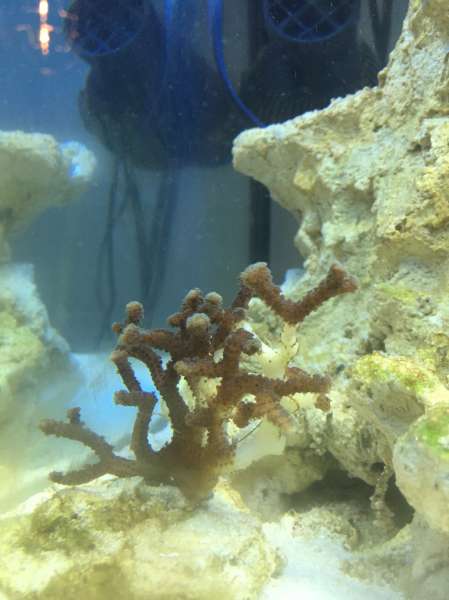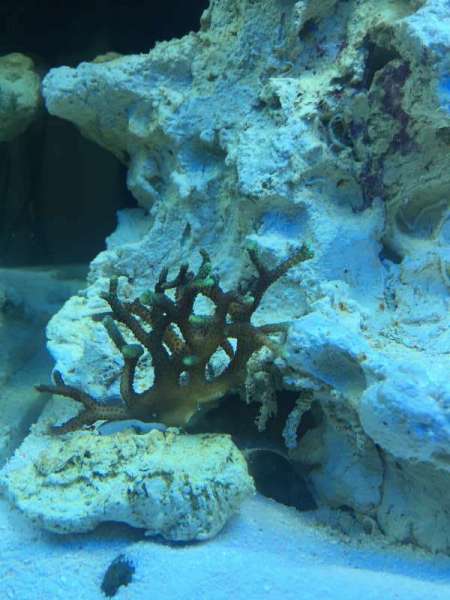Det gik rigtig godt den første uge, vi måtte fjerne en enkelt glasrose og alt virkede ok. MEN - nu døde vores søstjerne i forgårs, og den ene af korallerne er begyndt at miste farve og er bare hvid.