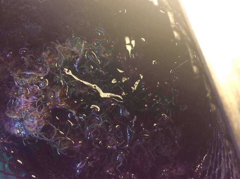 Pods skal nok klare sig uanset hvor algerne er placeret i sumpen. De er ikke kun i algerne men over alt. Der er nok lige så stor risiko for at de ryger i skummerpumpen som i returpumpen.
