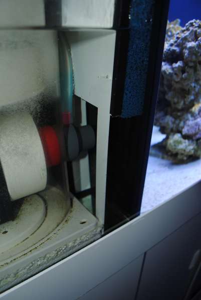 Min indvendige sump har målene L30 x D60 x H45, og er inddelt i et skummer- og returrum delt af en bobblefælde. Jeg har fået det lavet sådan, at jeg kan tage sidestykkerne, på begge sider, og en inspektionsplade, på bagsiden, af, som dækker af ind til sumpen, og på den måde kan jeg kigge ind i sumpen, når jeg roder i denne. Ideen til dette er, at hvis jeg vælger at bruge akvariet som rumdeler, så har jeg nem adgang til den indvendige sump fra begge sider