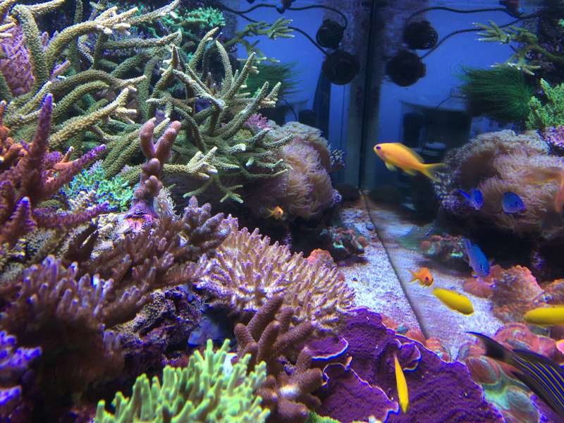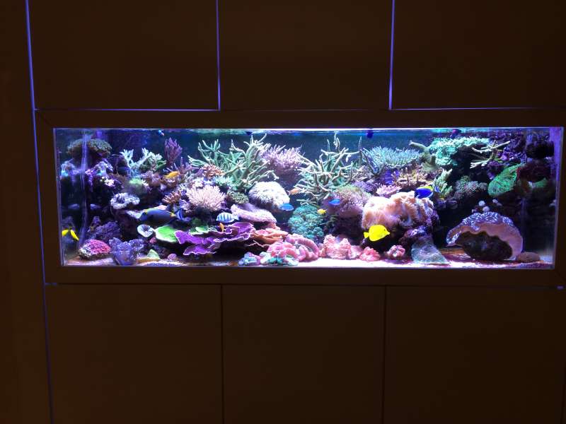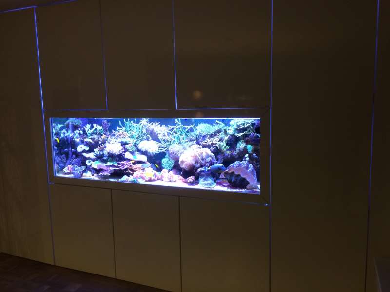 Selv akvariet har jeg vel haft efter hånden i ca 6-7 år, det har været igennem mange af mine underlige ideer, Da det blev sat op var det et rent koral akvarie, men efter nogle år pga af manglende tid blev beslutningen at koraller skulle sælges og laves om til rent fowler med en masse forskellige kejsere, dette var også spændende men der mangle jo hele tiden noget, Nemlig koraller. Nå men fik andet arbejde og pludselig var tiden til det igen og så blev fiskene solgt, og akvariet blev lagt om til koraller igen. Dette er ca 2 -2,5 år siden at jeg puttede den første koral i, og det er dette akvarie jeg her vil fortælle lidt om og ikke mindst vise lidt billeder af.