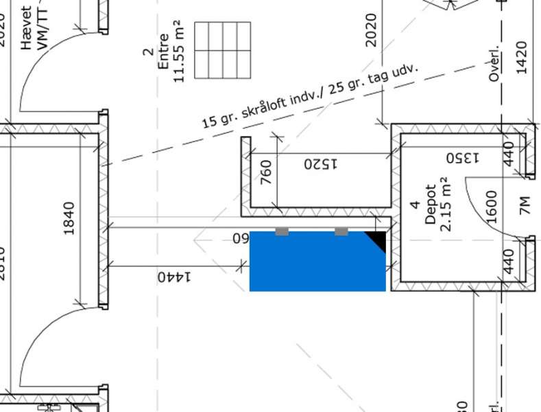 så vil det næsten være 2 i siden op imod vægen, syntes bare det vil være pænest at have hele den ene side fri for teknik, når man kommer til at gå forbi der tit