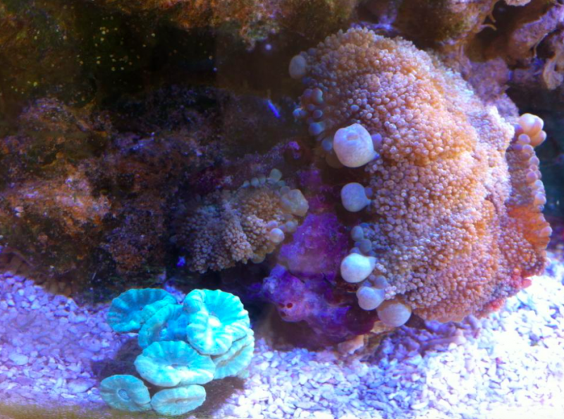 Korallerne står ikke pænt da jeg lige har klistret nogle af dem fast og rodet i akvariet i dag. Klovnene er begyndt at bo i hver deres koral, henholdsvis en duncan og en hammer, hvilket jeg er lidt træt af. De mødes dog somme tider for, at hannen kan ryste og underkaste sig den store hun. Den gule kirurg trives fortsat. Han klovnen er stadig meget tynd og jeg mistænker den for at være underernæret. Jeg fodrer derfor små portioner flere gange dagligt.