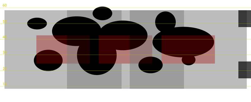 Lampe opstilling med 4 stk... det grå er lys spredningen, det mørk grå er lys overlap. 4 er klart overkill, men planen er at køre dem på 50% styrke kun, og så rolling clouds effekten.
